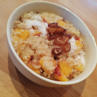 Zajtrk: Topel hruškin kompot, lipov čaj ALI ingverjev čaj, kostanjeve kroglice (kostanjev pire, mandljeva moka, ghee maslo, datlji, cimet) ALI ajdova kaša s hruškami ALI pirin kruh z breskvovo marmelado ALI mlečni riž (riževo mleko), lahko skuhan na kompotu (breskve, jabolko, hruška), s sušenimi slivami...